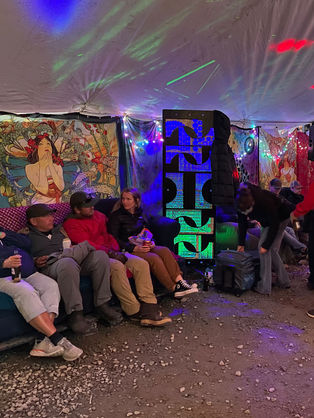 The event takes place over two days, with a Saturday night party and a Sunday daytime open-mic showcase. In previous years the 21+ Saturday party has included electronic DJ sets, fire-dancing performances, a metal artwork exhibition, electrical art installations, interactive painting, games, and fireworks (among other surprises)! The Sunday open mic welcomes local musicians, bands, and performers of any kind to share their creative talents in a family-friendly setting. A circus-style tent is erected over the main stage and dance floor to shield attendees from the elements so that each day of the event can be enjoyed in either rain or shine.